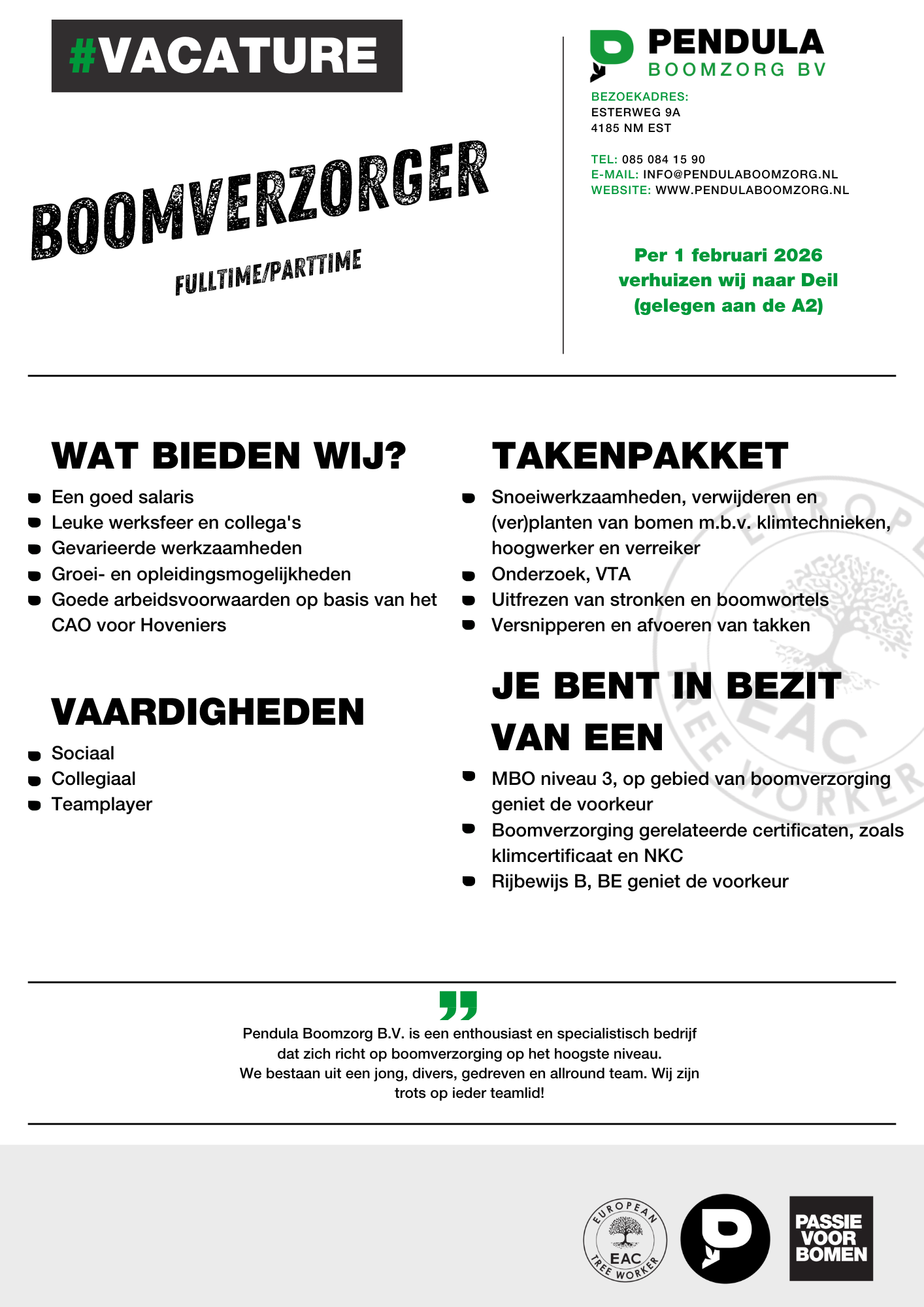 Pendula Boomzorg BV bestaat uit een jong, divers, gedreven en allround team. Wij zijn trots op ieder teamlid!