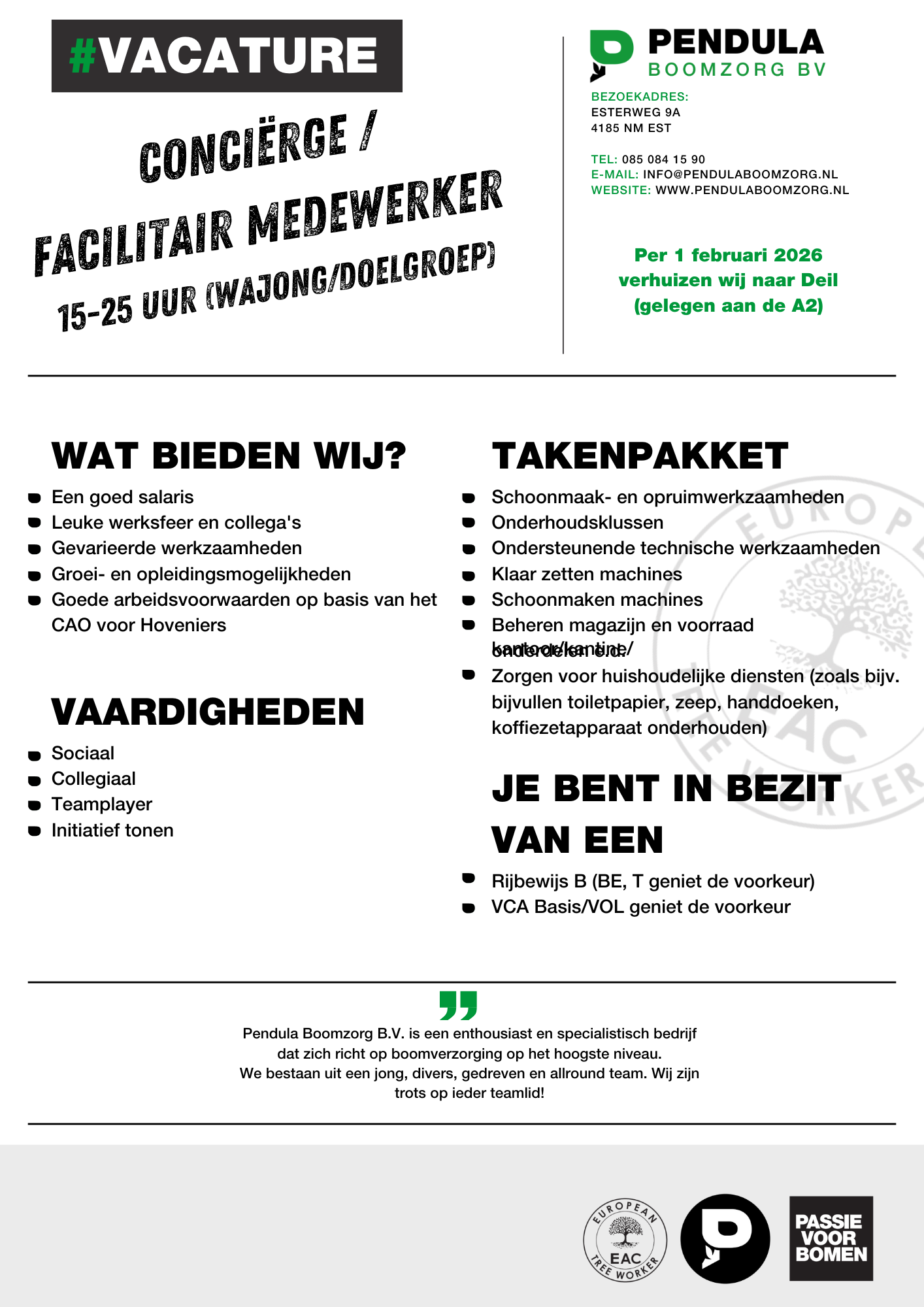 Staat er voor jou geen actuele vacature open die bij je past, maar wil je toch graag met ons kennis maken? Dat kan natuurlijk altijd! Bel/WhatsApp gerust naar 085 084 15 90 of stuur een e-mail naar info@pendulaboomzorg.nl.